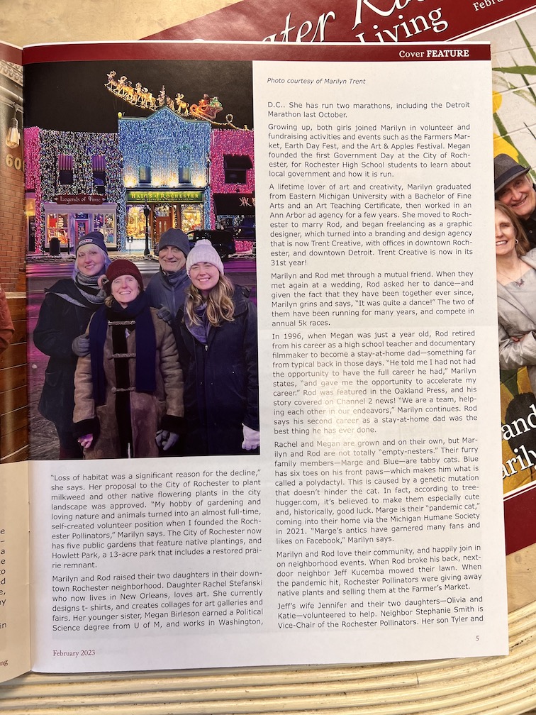 Look at what just came to us in the mail! We are thrilled to share that our founder and owner, Marilyn Trent, was recently featured in the Greater Rochester Living magazine for her creativity and engagement in corporate social responsibility. This recognition is a testament to Marilyn's commitment to corporate social responsibility and her dedication to positively impacting the lives of those around her.