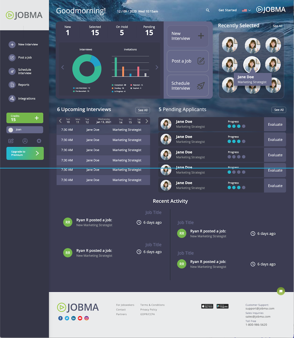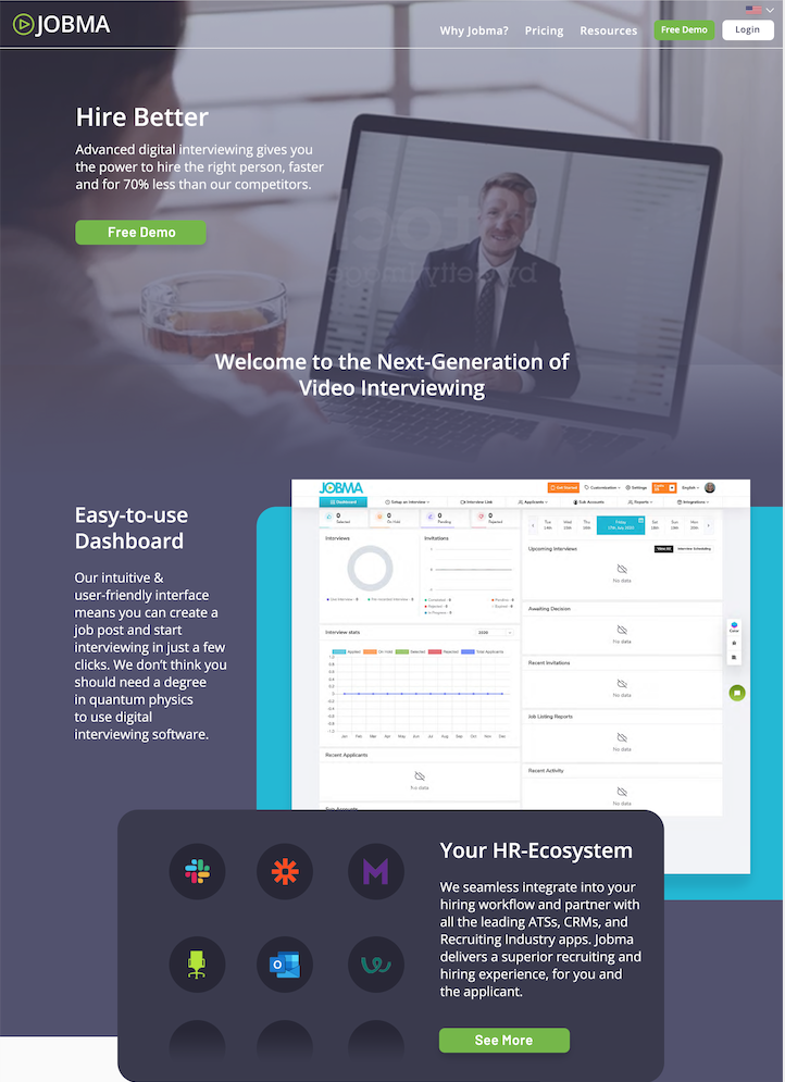 We were asked to serve as a creative services partner to rebrand, reposition and redesign Jobma, a SaaS company. Jobam wanted to disrupt the video interviewing market space by decreasing the cost per interview for afforability and making it simple to use.