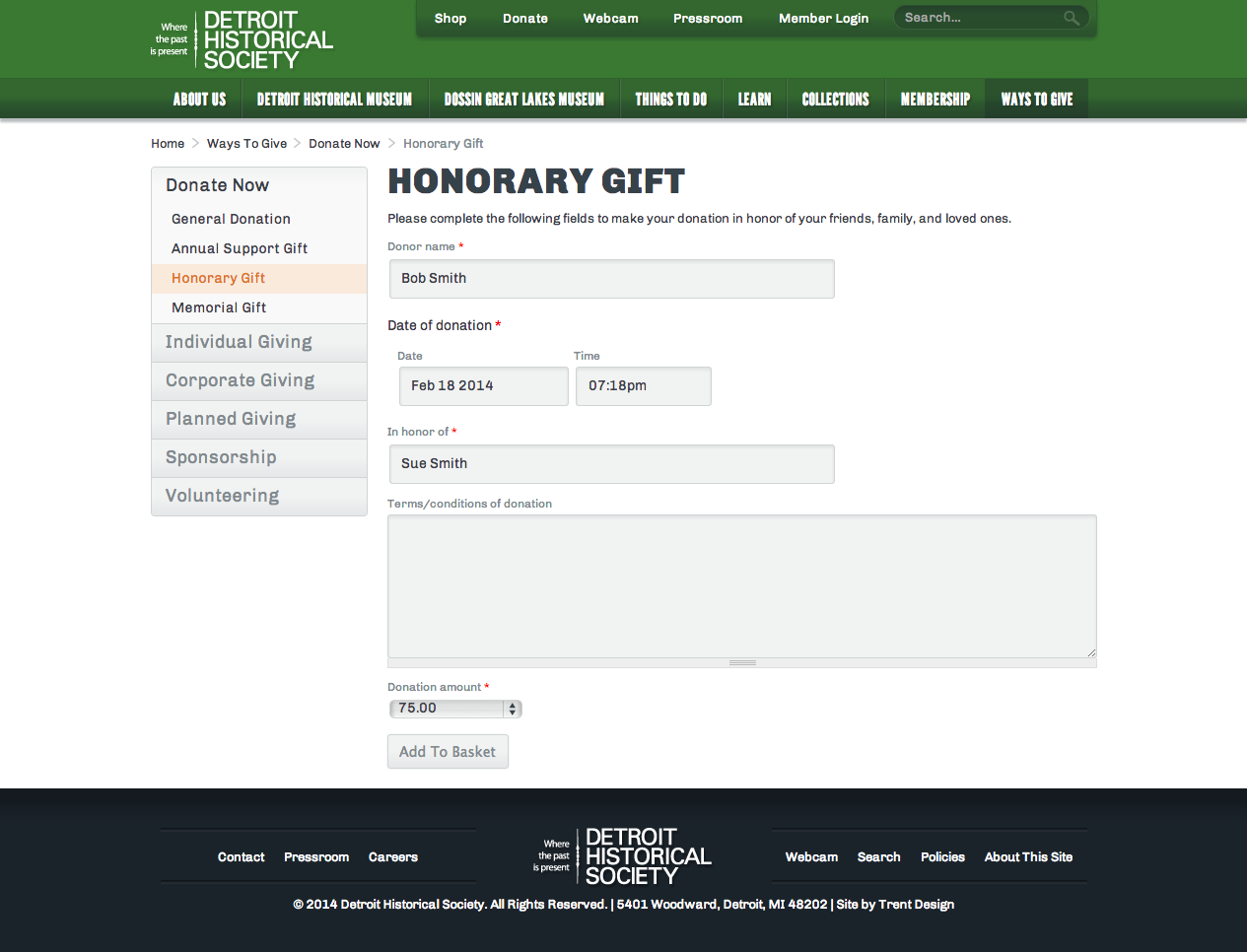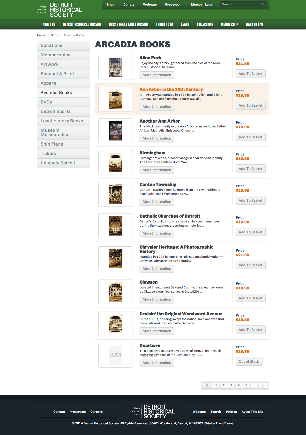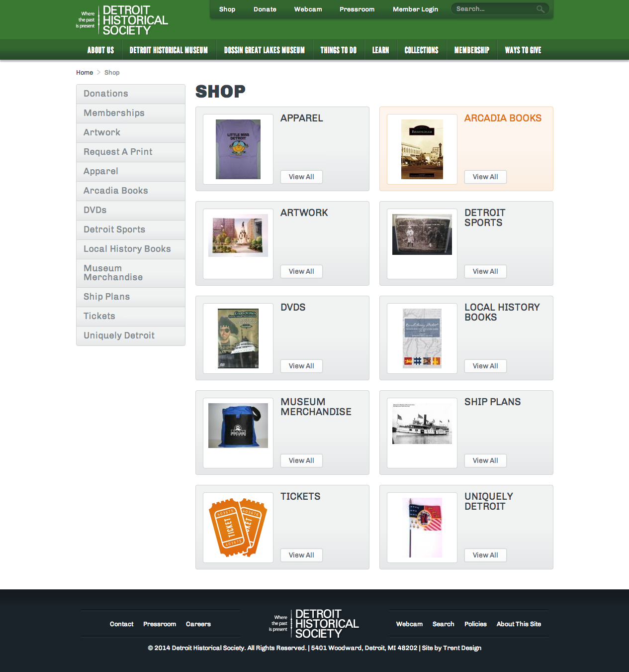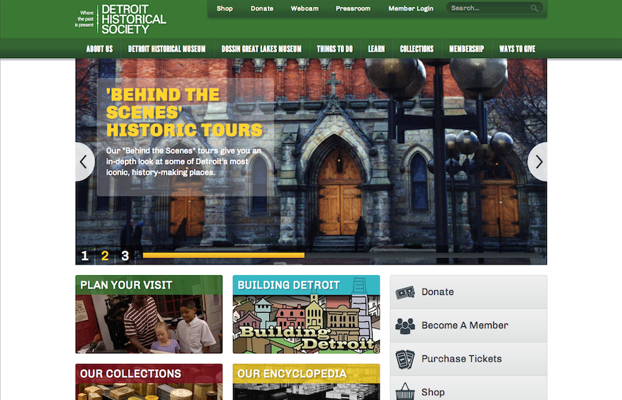 Our web team created a new, fully-featured CMS site for the client using Drupal. The site offers a vast array of resources that can be easily accessed through a streamlined user navigation. We worked with several departments within the Detroit Historical Museum to make sure the new site would satisfy the individual needs of each department’s end users. We also implemented an e-commerce shopping cart that had more features and functionality than their previous site.