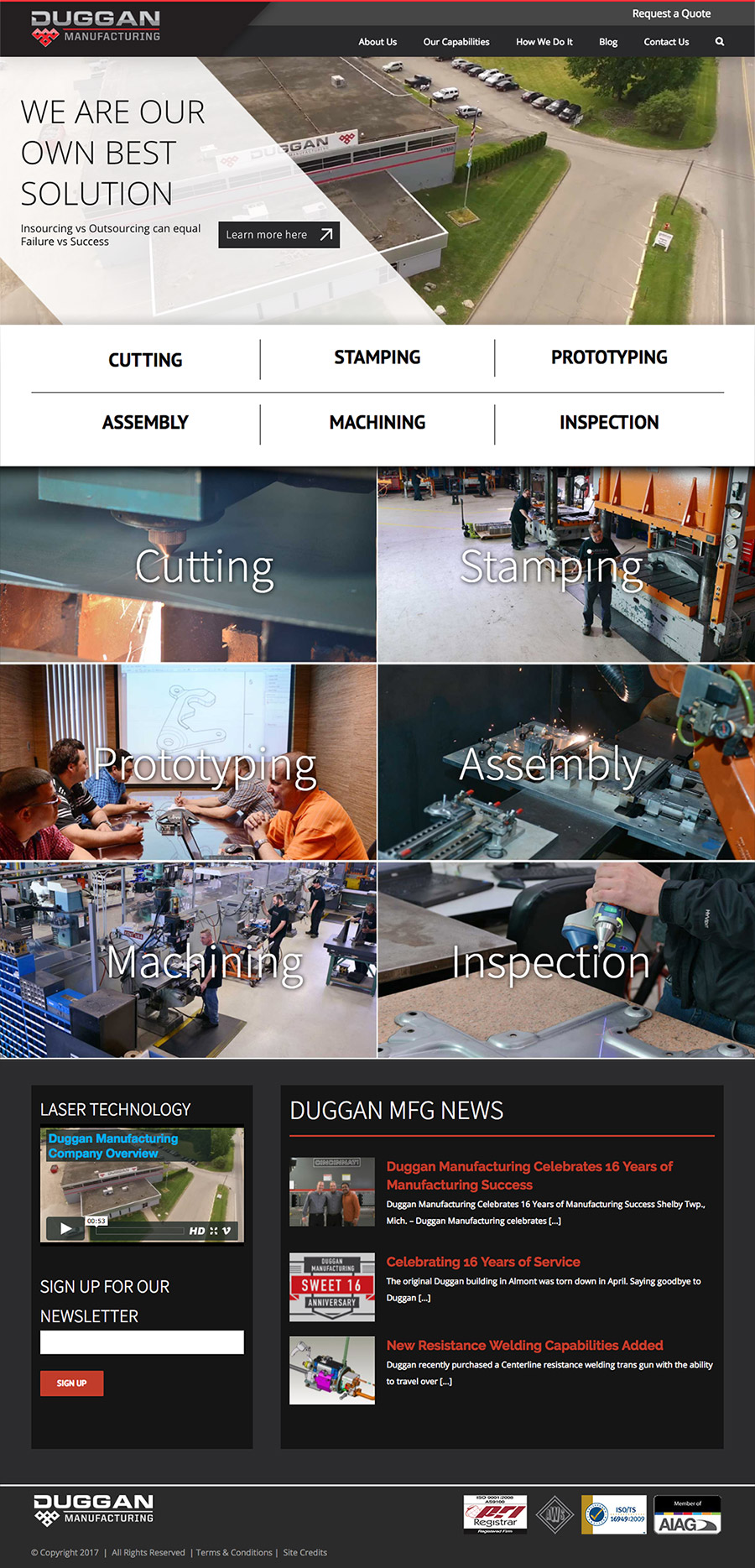 Solution: Duggan needed to advance their positioning in the manufacturing space as the leader in fiber optic laser welding and cutting and show case their vast amount of capabilities and services—'all under one roof.'
